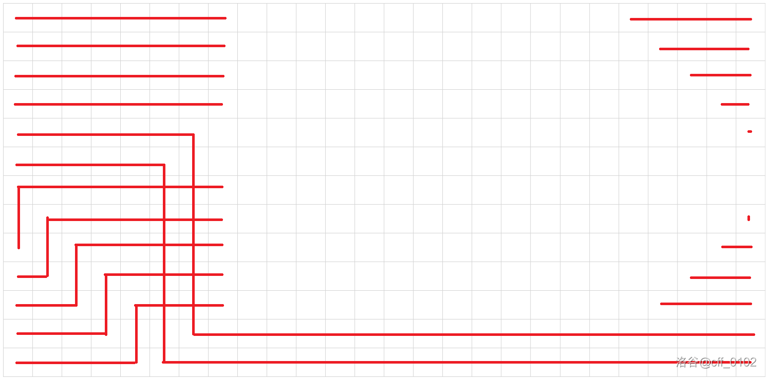 每条折线要么是左上到右下,要么是左下到右上,不难发现我们可以将其延长到四个角上